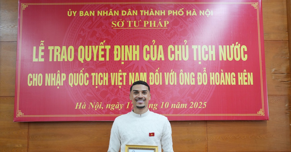 Tiền đạo Đỗ Hoàng Hên đã chính thức nhận quốc tịch Việt Nam vào ngày 17.10, sau khi được trao quyết định nhập quốc tịch tại Sở Tư pháp TP Hà Nội. Đây là bước ngoặt lớn trong sự nghiệp của cầu thủ sinh năm 1994, mở ra khả năng khoác áo đội tuyển quốc gia trong tương lai gần.