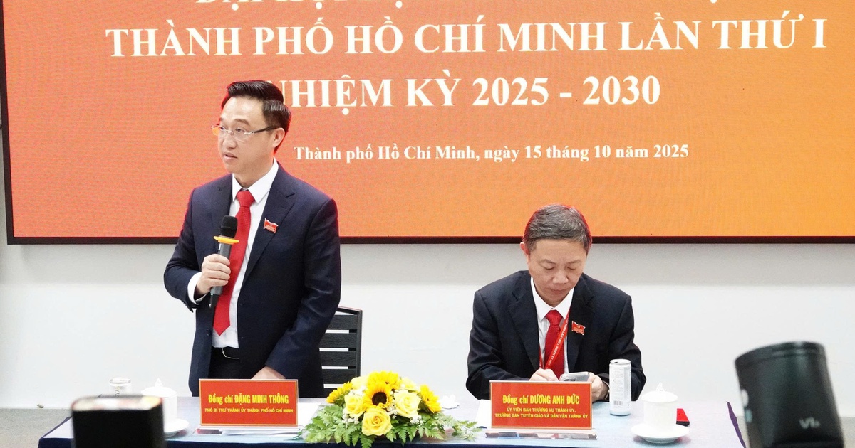 Ngày 15.10, Thành ủy TP.HCM tổ chức họp báo để cung cấp thông tin về kết quả Đại hội đại biểu Đảng bộ thành phố lần thứ nhất, nhiệm kỳ 2025-2030. Buổi họp do ông Đặng Minh Thông, Phó bí thư Thành ủy, cùng ông Dương Anh Đức, Trưởng ban Tuyên giáo và Dân vận Thành ủy, đồng chủ trì.